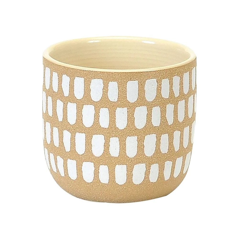 The cutest little home for your house plants! This ceramic pot has a sandstone finish with creative and delightful little brush strokes.