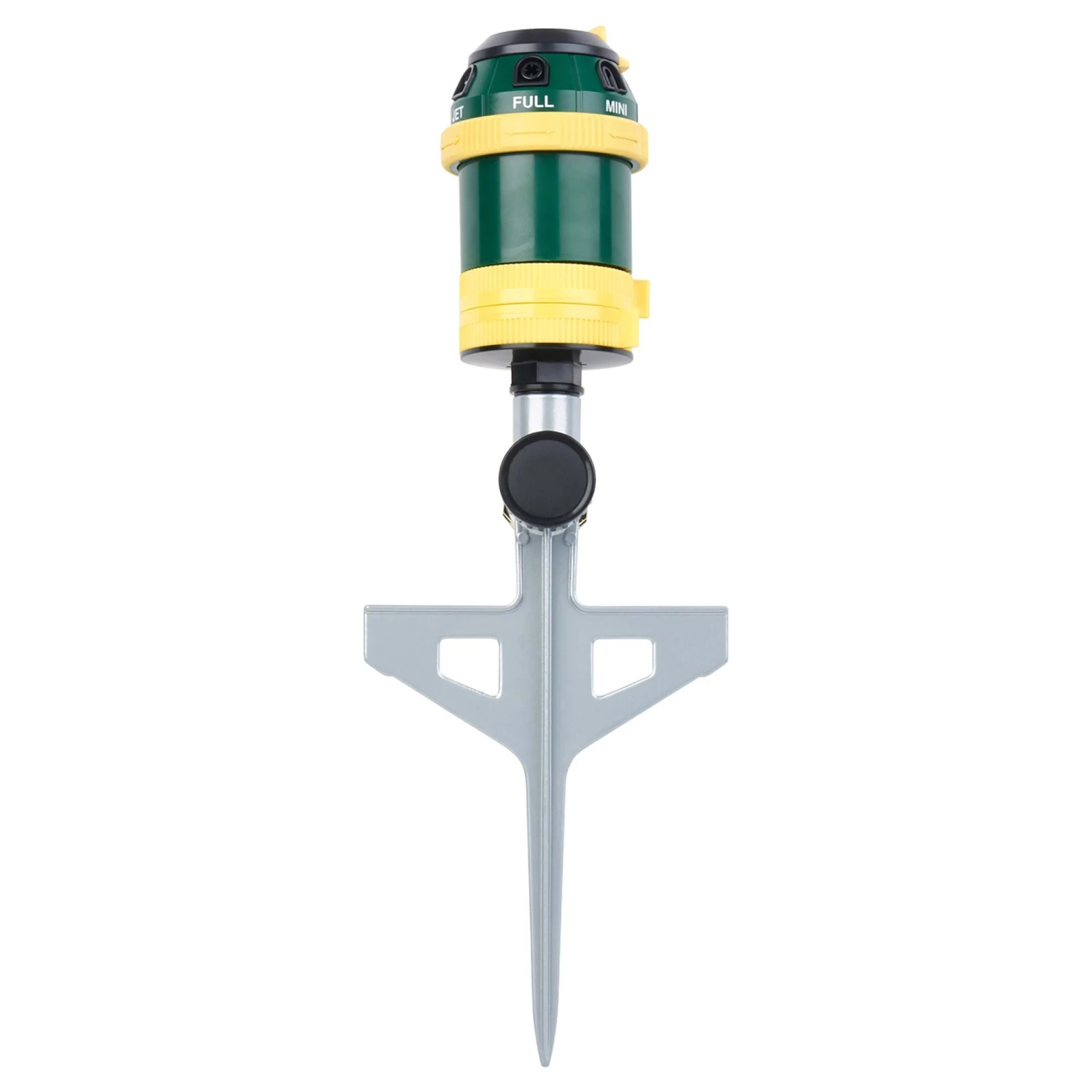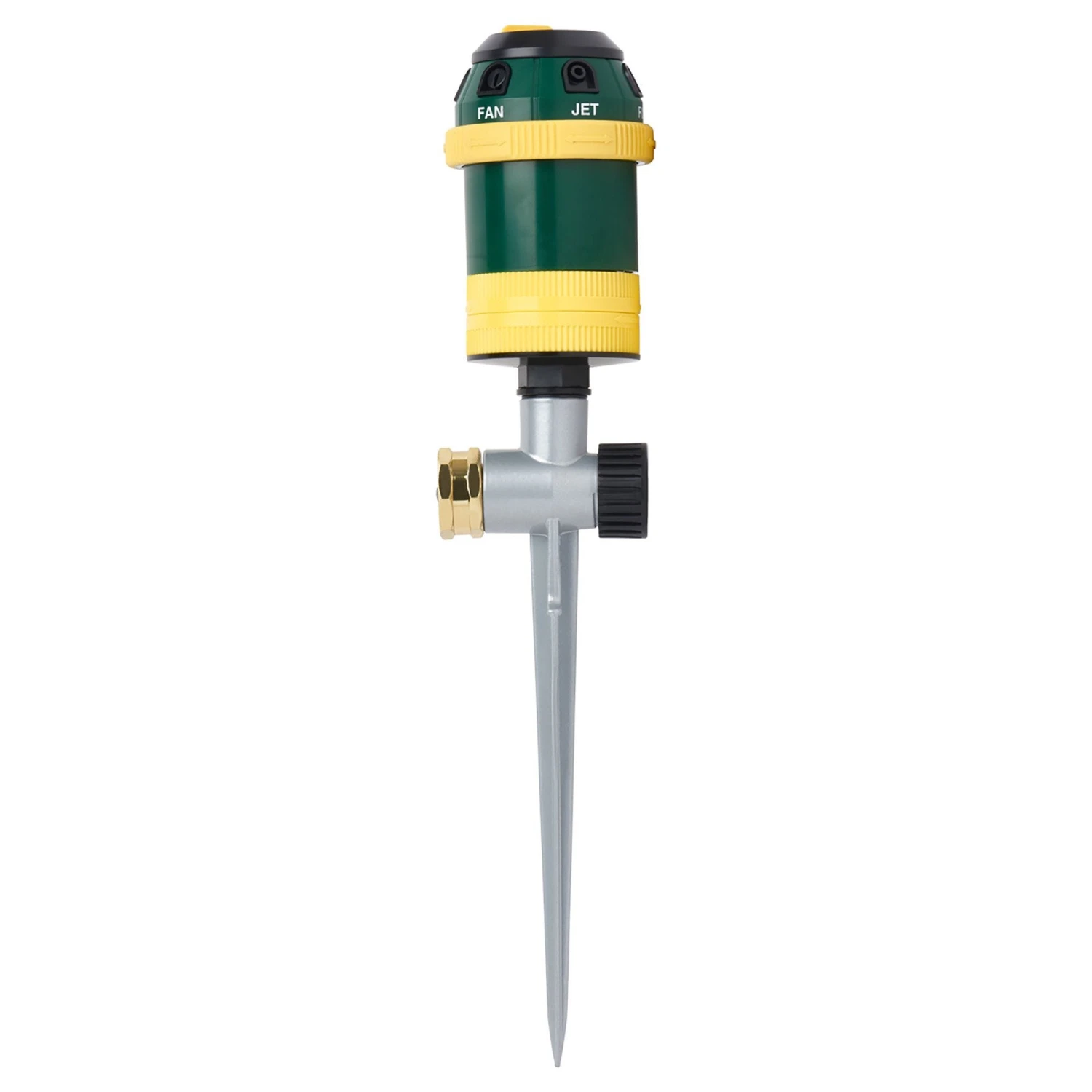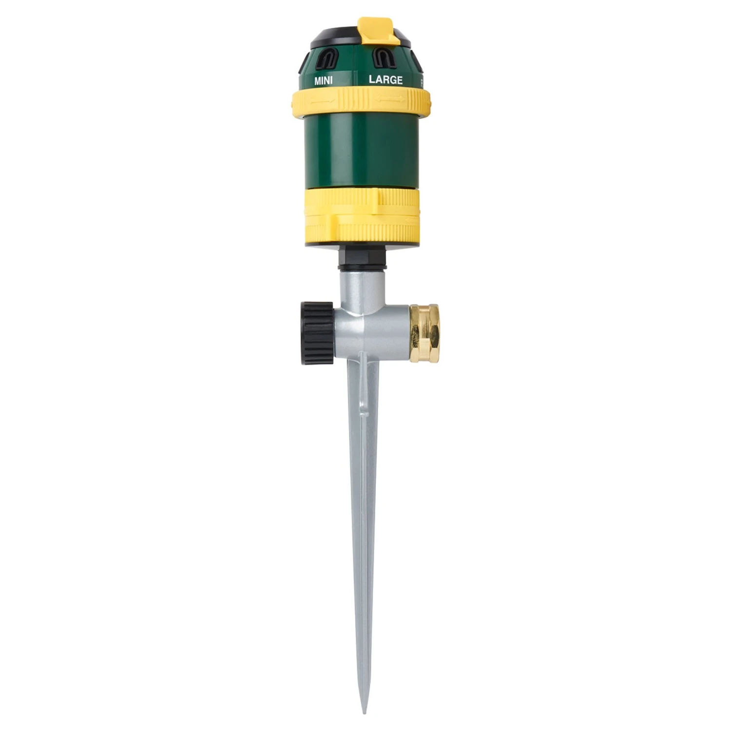 The turbo drive rotary sprinkler is ideal for discreet watering. Water early in the morning with the nearly silent operation that won’t disturb the neighbors. Six spray patterns allow you to adjust the water flow from jet-full-fan-flat and more. The sturdy metal spike works well even in hard soil. Unit-to-unit connection allows multiple sprinklers to connect and water an even larger area. For beautiful flowers and bountiful gardens, get the right water tool to keep everything healthy all-season long.