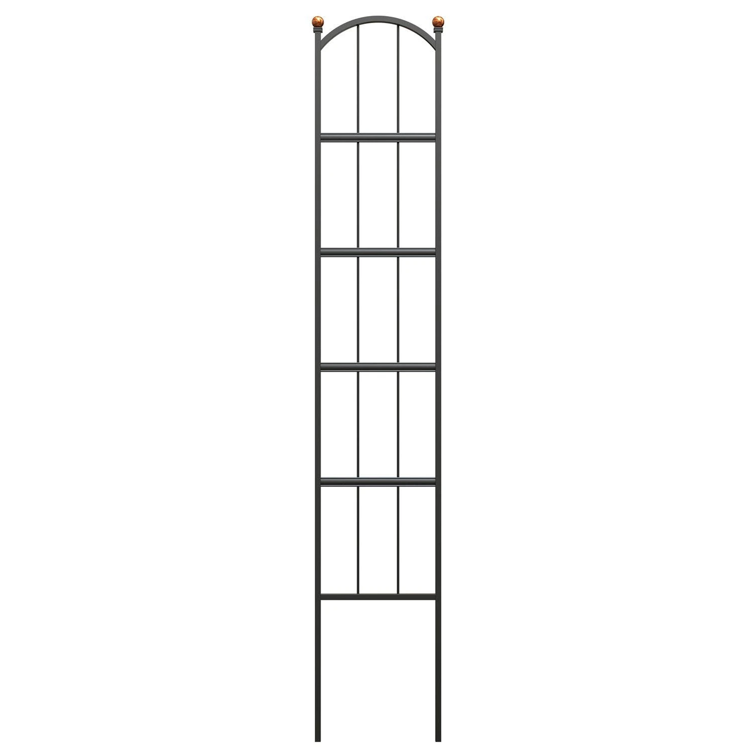 Modern farmhouse designs are on-trend, classic looking garden accessories to decorate outdoor living spaces. Distinctive details of copper accents add modern appeal while embossed banding giving a rustic look. This trellis can be used in a 12-inch wide container or larger and lends a farmhouse look to any setting in moments. The trellis pane spacing is ideal for smaller climbing vine plants, like miniature clematis, honeysuckle and other flowering vine plants. Constructed of sturdy steel and painted with a rich black powder coated finish for durability.