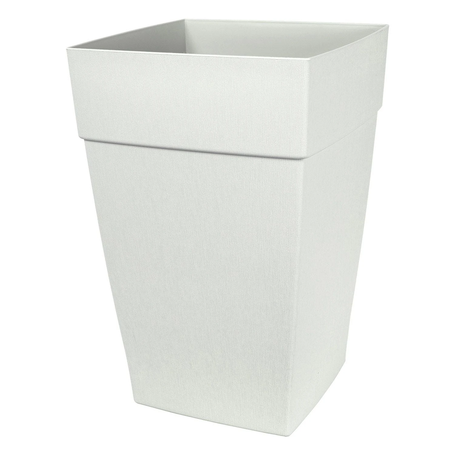 This self-watering Harmony tall planter with a large water reservoir has a unique textured vertical finish. It holds 7.2 litres of soil and features an overflow protection (for outdoor use). This planter is made in Canada with recyclable and non-toxic thermoplastic (Food Safe). It is UV protected and lightweight for easy moving.