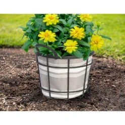 Modern farmhouse designs are on-trend, classic looking garden accessories to decorate your living spaces. This wire bushel basket features an all weather bistro print fabric liner is trendy and looks great indoors or outside! Pop in potted herbs or plants in the kitchen, or use outdoors for summer fun essentials. The sewn-in poly lining prevents leaking & soiled liner. Multi-purpose containers are great for garden or home.