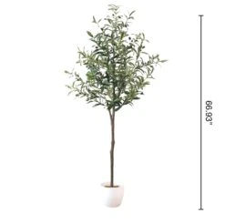 Perfect for year-round enjoyment, arrange your interior décor around a natured-filled vibe. This compelling tree features slender branches that form naturally with the trunk, green leaves with olives and pre-potted in a moss filled white planter for convenience. A life-like appearance that will ensure to enhance any room in your home or office.