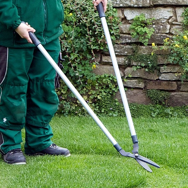 - With angled blades reducing your need to bend over, comfortable rubber grip handles and ultra-lightweight aluminum shafts, even prolonged cutting is comfortable