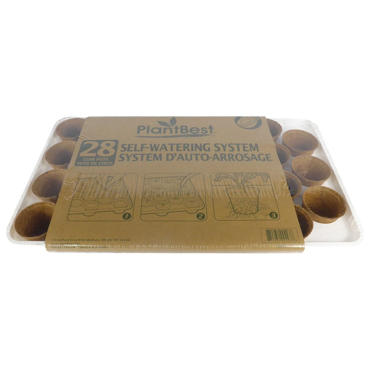 This kit includes a self-watering tray with channels to disperse water evenly across all 28 – 2.5 inch coconut coir pots. The assembled kit creates a moist environment for seeds and seedlings to thrive, while the pots are natural, peat-free, made from 100% organic coconut coir and are sustainable, renewable and biodegradable after a season or so. The self-watering tray can be reused multiple seasons and the coir pots can even be planted directly into the ground where they will biodegrade after a season or so.