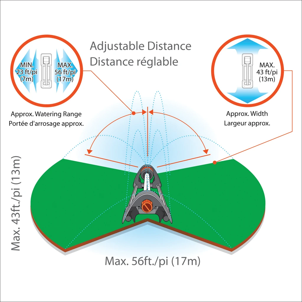 Get a sprinkler to suit your needs. Perfect for small to medium sized yards, this sprinkler covers up to 2400 sq. ft., and includes a long lasting turbo drive motor.