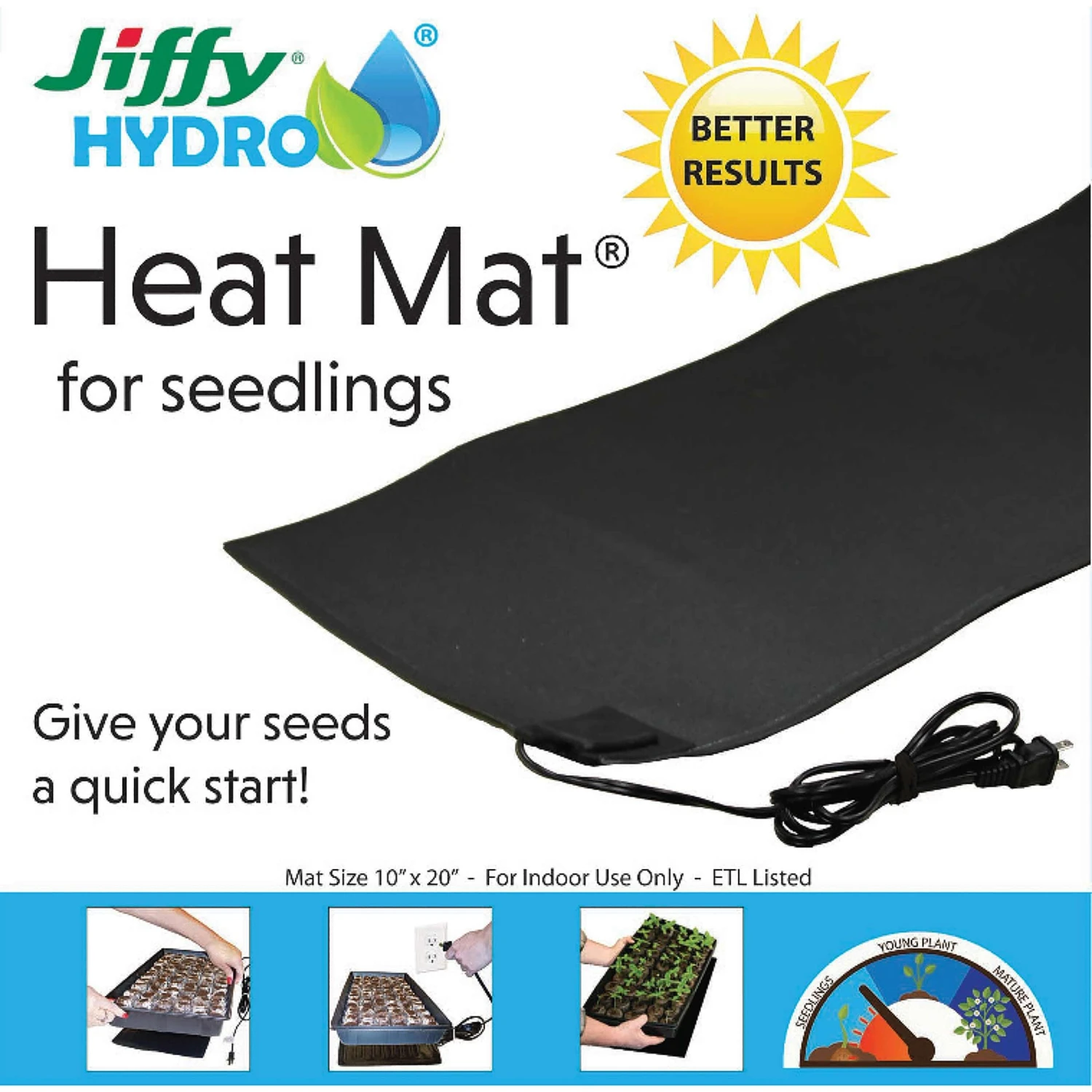 Give young plants the boost they need to get a head start on growth with this greenhouse heat mat by Jiffy. Suitable for many species such as herbs and flowers, it warms up seeds planted in soil and encourages the natural germination process. This Jiffy® Hydro® heat mat is useful for indoor applications such as greenhouses or other interior planting areas. It’s also easy to use and features a 6′ power cord for a long reach when finding a 120 V outlet. The 10″ width accommodates seed trays of varying sizes.