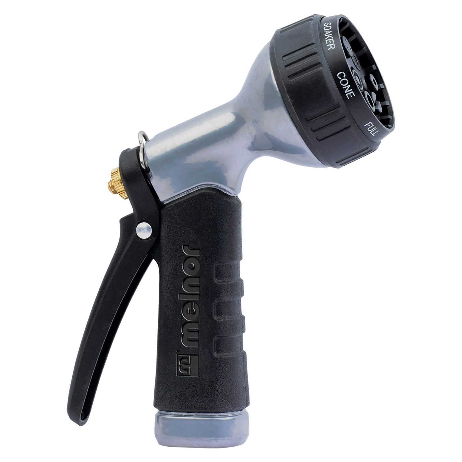 Perfect for smaller hands, the mid-sized metal 7-pattern nozzle handles even the largest jobs. Easily adjust the spray between a variety of handy patterns. Use the full shower for gently watering colorful flowers then switch to a strong jet when you wash the car. A rubberized slip-resistant grip allows you to comfortably handle all your watering chores. Built of heavy-duty metal, you can trust on this durable nozzle to hold up for years to come.