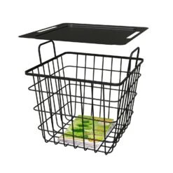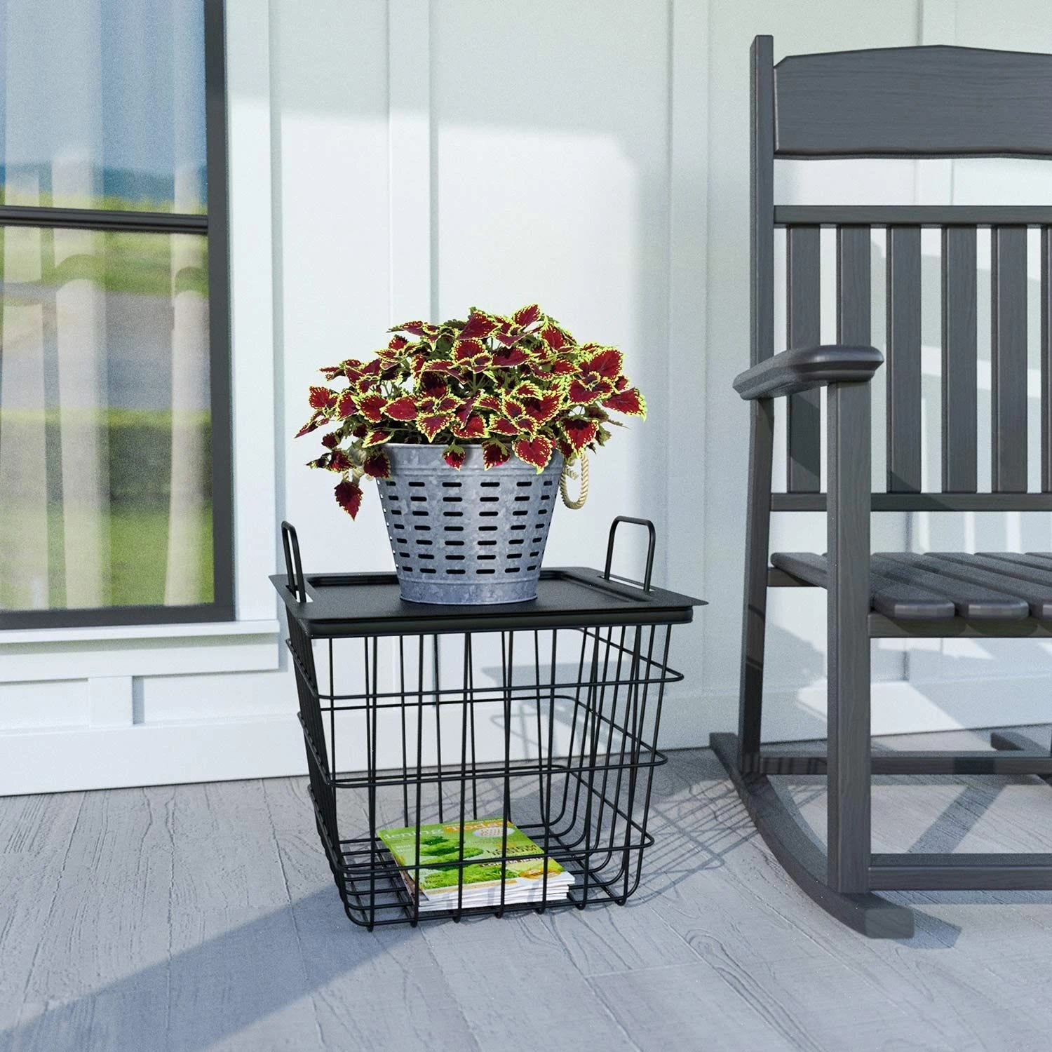 So many places to use this attractive and functional basket bin with tray top. Clean lines and matte black color look great on your deck, patio, front porch, college dorm or any room in the house. Combine style with extra storage space for household items, magazines or craft items. Use the removable tray top as a work surface, or display your favorite potted plant.