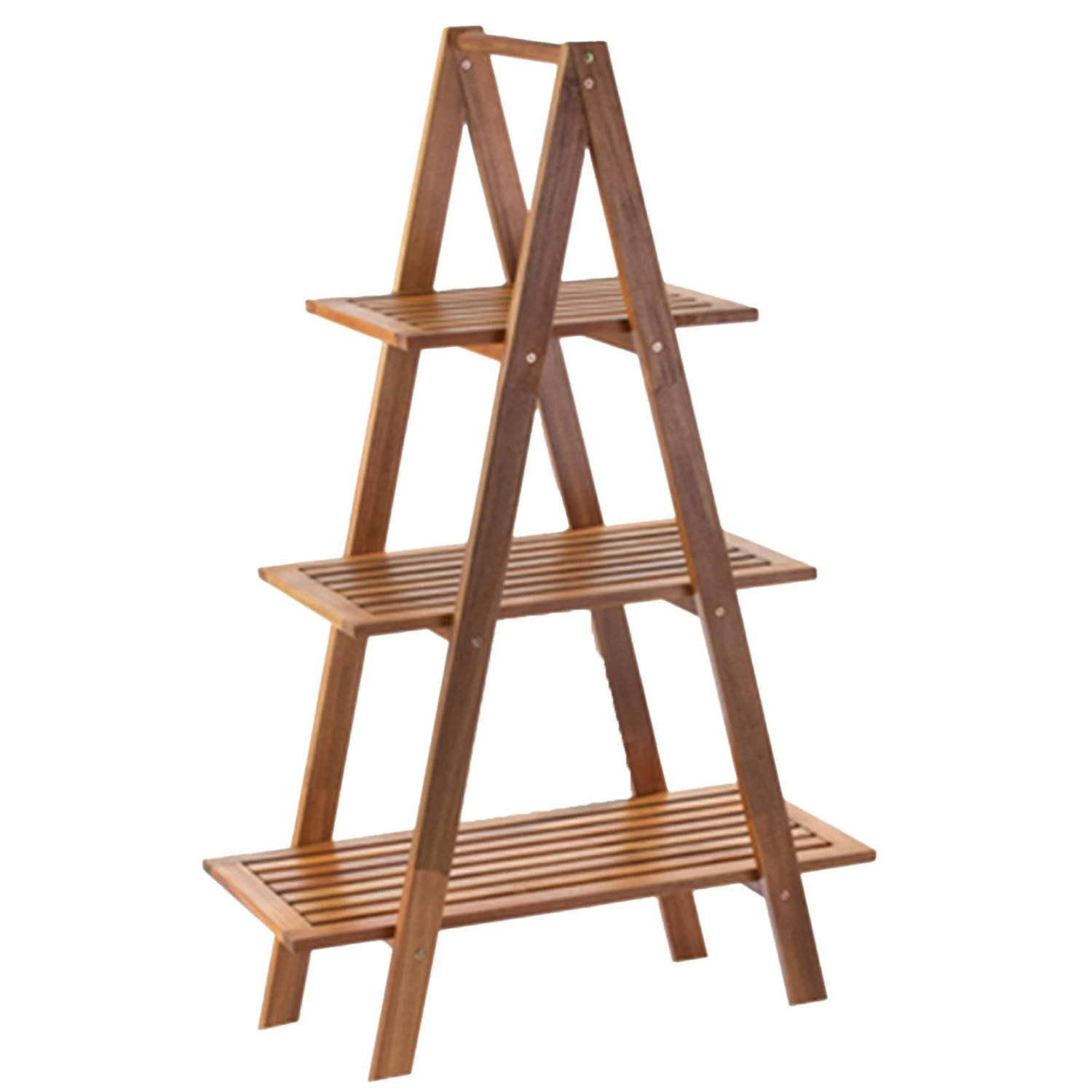 The ladder design Outdoor Plant Shelf is a convenient way to save space in your outdoor living space. This stylish 3-tiered Plant Shelf Stand uses varying shelf sizes to showcase creativity and your green thumb! Made of Acacia wood, the natural wood grain complements the great outdoors and all things green. Your sturdy new ladder shelf naturally resists the weather. All hardware receives a galvanized coating to protect components from corrosion. Everything you need to assemble this Plant Shelf is provided in the packaging. You’ll have a revitalized space displaying your potted plants & decor in no time!