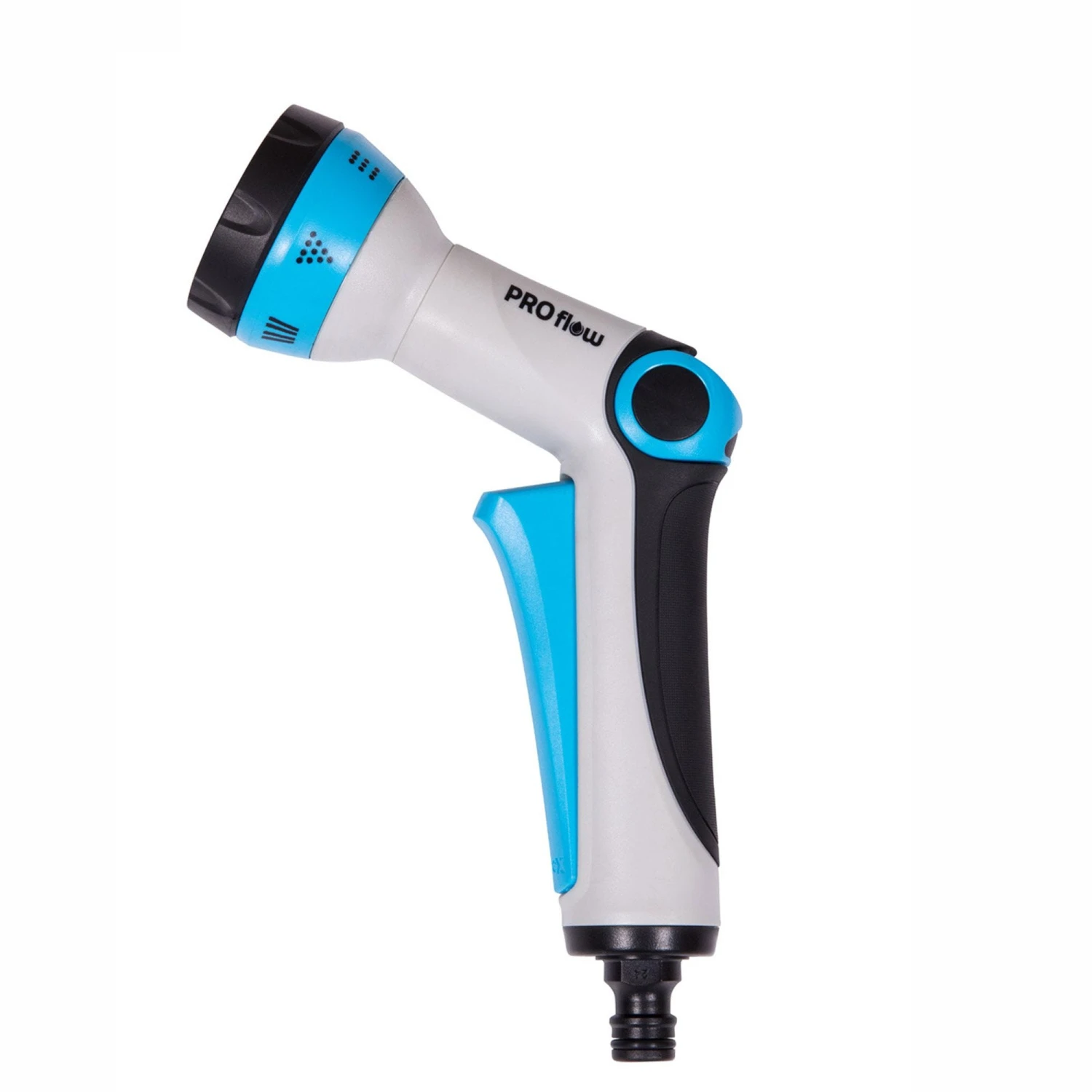 Pro Flow muli-funtion spray gun with adjustable 7-function head, thumb flow control and quick connect hose connector included offers quick and easy flow adjustment with the innovative thumb control level and squeeze-lock trigger. Select from seven popular watering functions including stream, full, flat, cone, mist, flood and shower.
