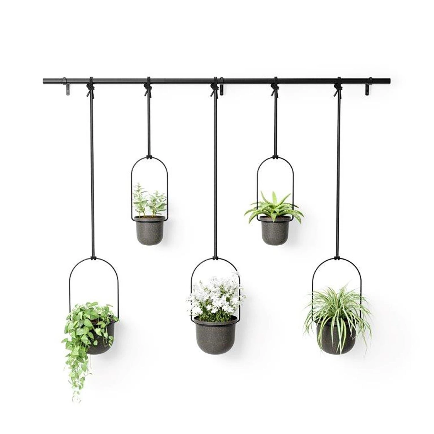 Triflora is a hanging planter for indoor plants that combines the utility of a drapery rod with the beauty of potted plants. Great for herbs, succulents, vine plants and more, Triflora Hanging Planter mounts to your wall or ceiling and adds functionality to your window by turning it into a space for growing plants. Because its pots are made from durable recycled molded polypropylene, Triflora remains lightweight even once plants are potted, allowing Triflora to be the lightest weight possible. You can adjust the length of Triflora’s ropes and slide them anywhere along the metal rod to customize the position of each hanging pot. The pots can hold two standard 3-inch (7.6 cm) diameter pots and three 6-inch (15 cm) pots (so there’s no need for re-potting). Max weight capacity of 20lbs. (9.1 kg). Triflora can also be used outdoors. Need some drainage? Easily drill a small hole into the bottom of each pot.